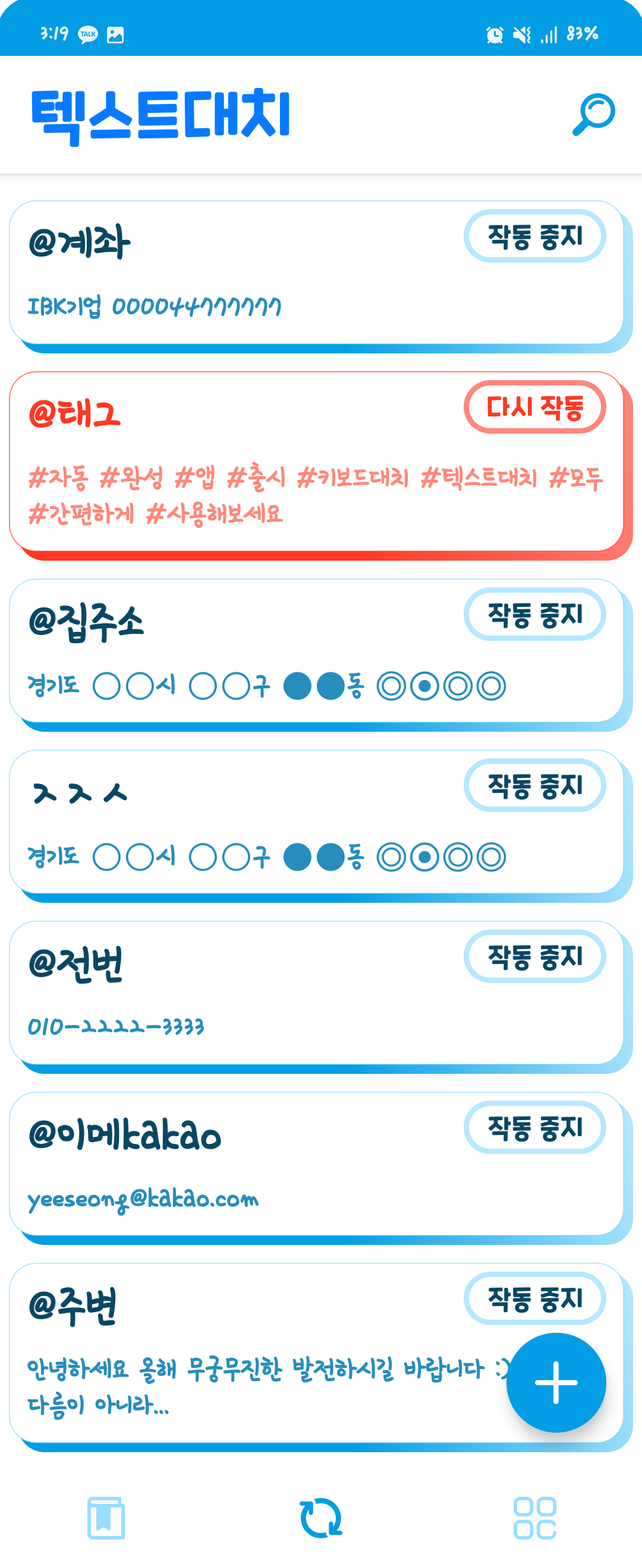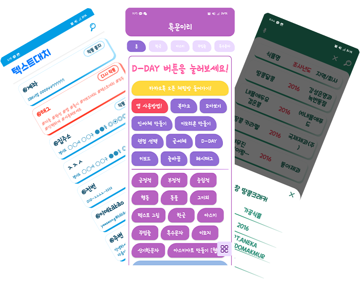 짧은 단어 혹은 초성만 입력하면 자동으로 장문부터 특수 기능 작동까지 되는 신기하고 편리한 앱!