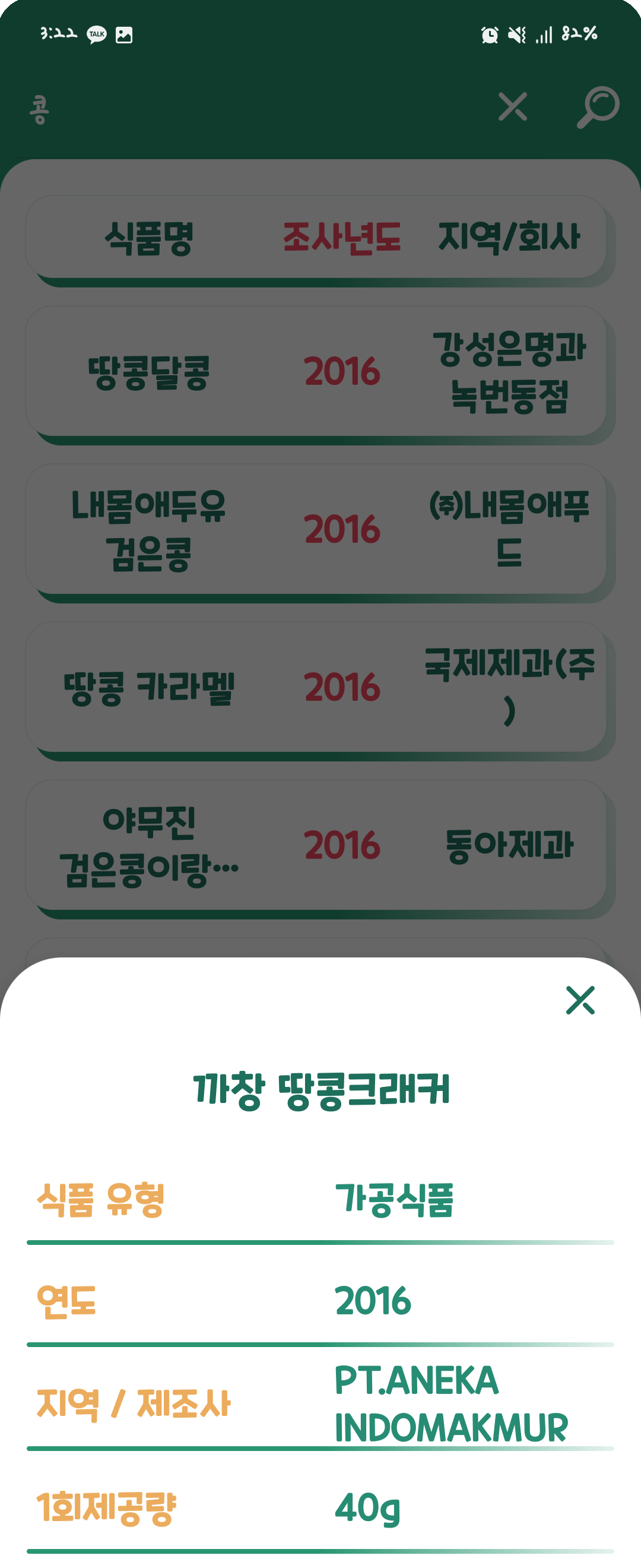 식품의약품안전처의 자료를 바탕으로 칼로리, 영양성분이 다 나와요!